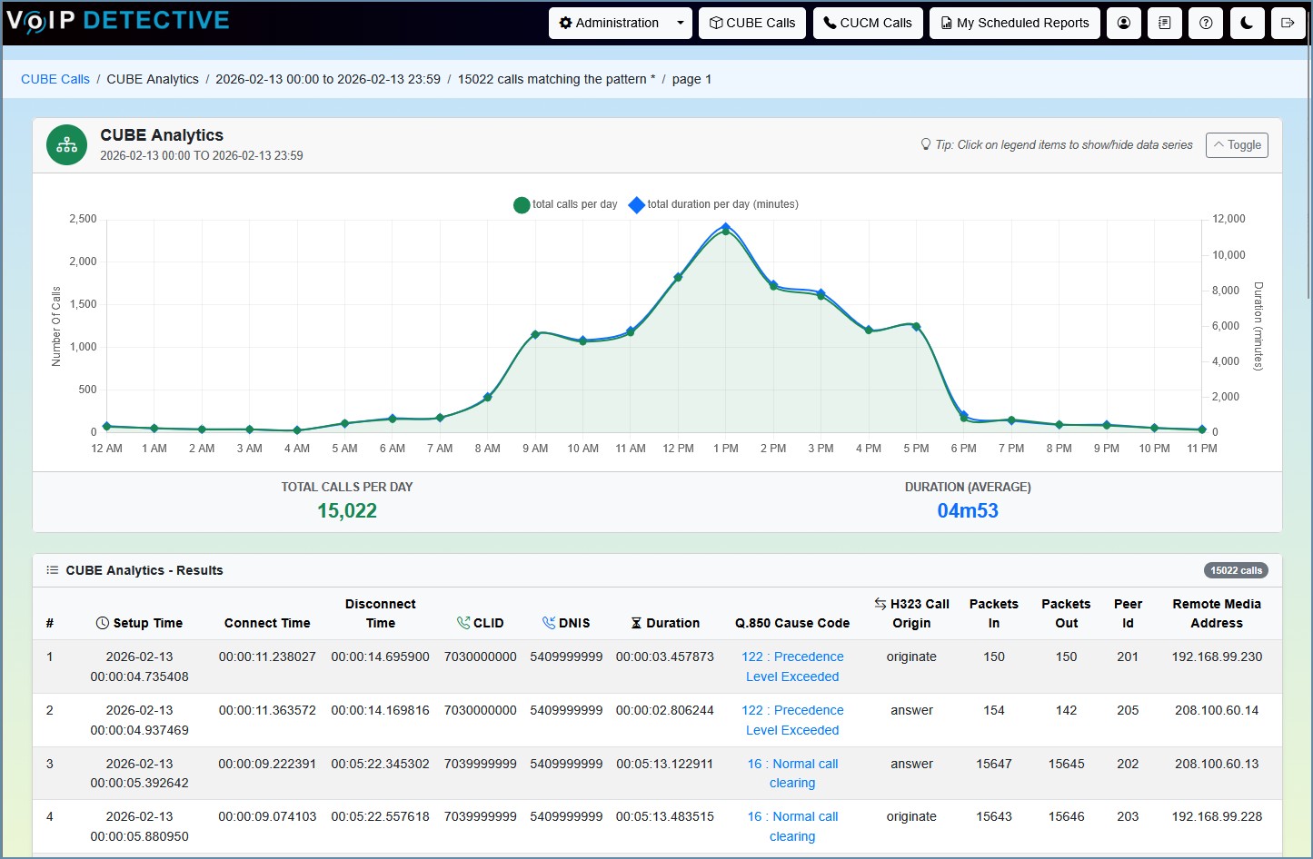 The CUBE (Cisco Unified Border Element)  usually sits at the edge of your organization, being the first device that calls hit when they come in, and the last device they touch on the way out.  Because of this, it is helpful to get an idea of calls that are presented to CUBE, and any errors that occur with them.  This is where VoIP Detective CUBE Analytics steps in.
