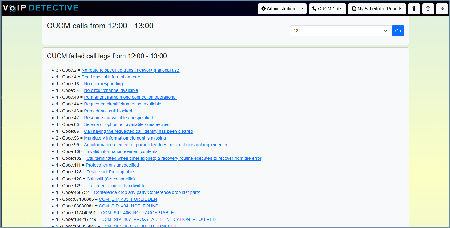 - Failed call legs - this shows specific error codes for your call failures. Useful for tracking down issues.