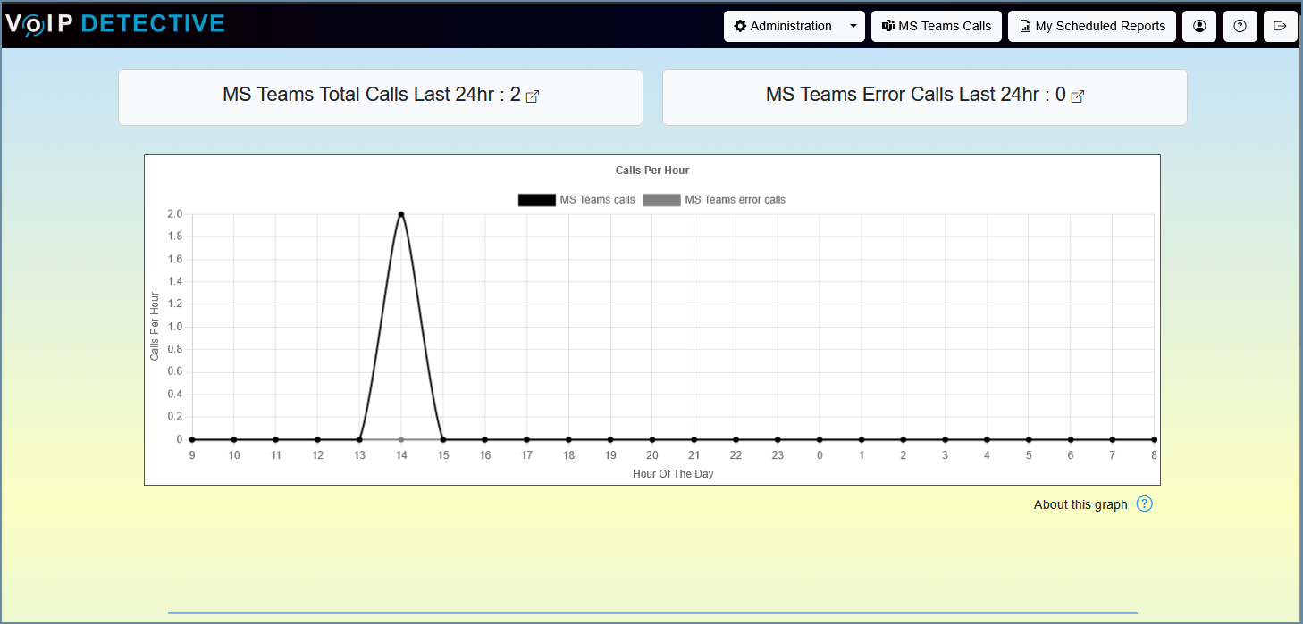 The MS Teams Calling Dashboard provides total calls, as well as hour by hour breakdowns.