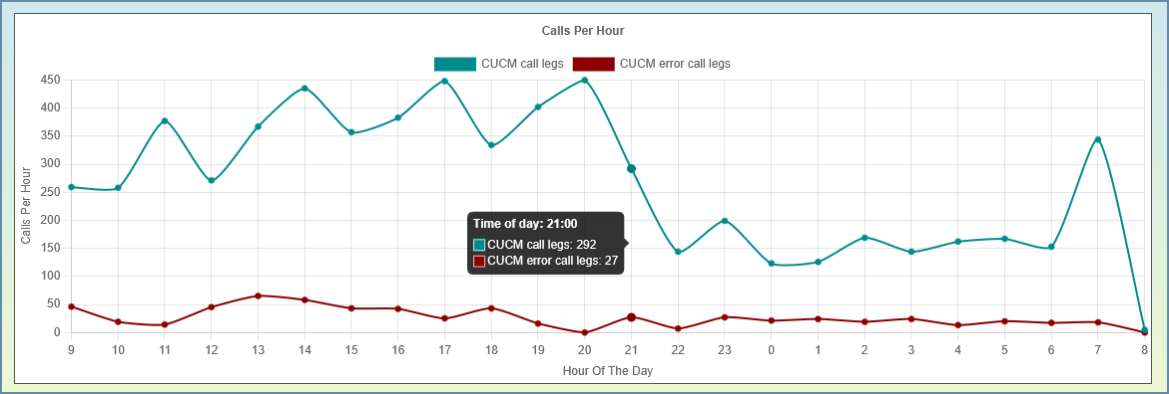 Clicking on the word "CUCM call legs" in the legend will remove that item from the chart. Clicking on the text again will restore it.