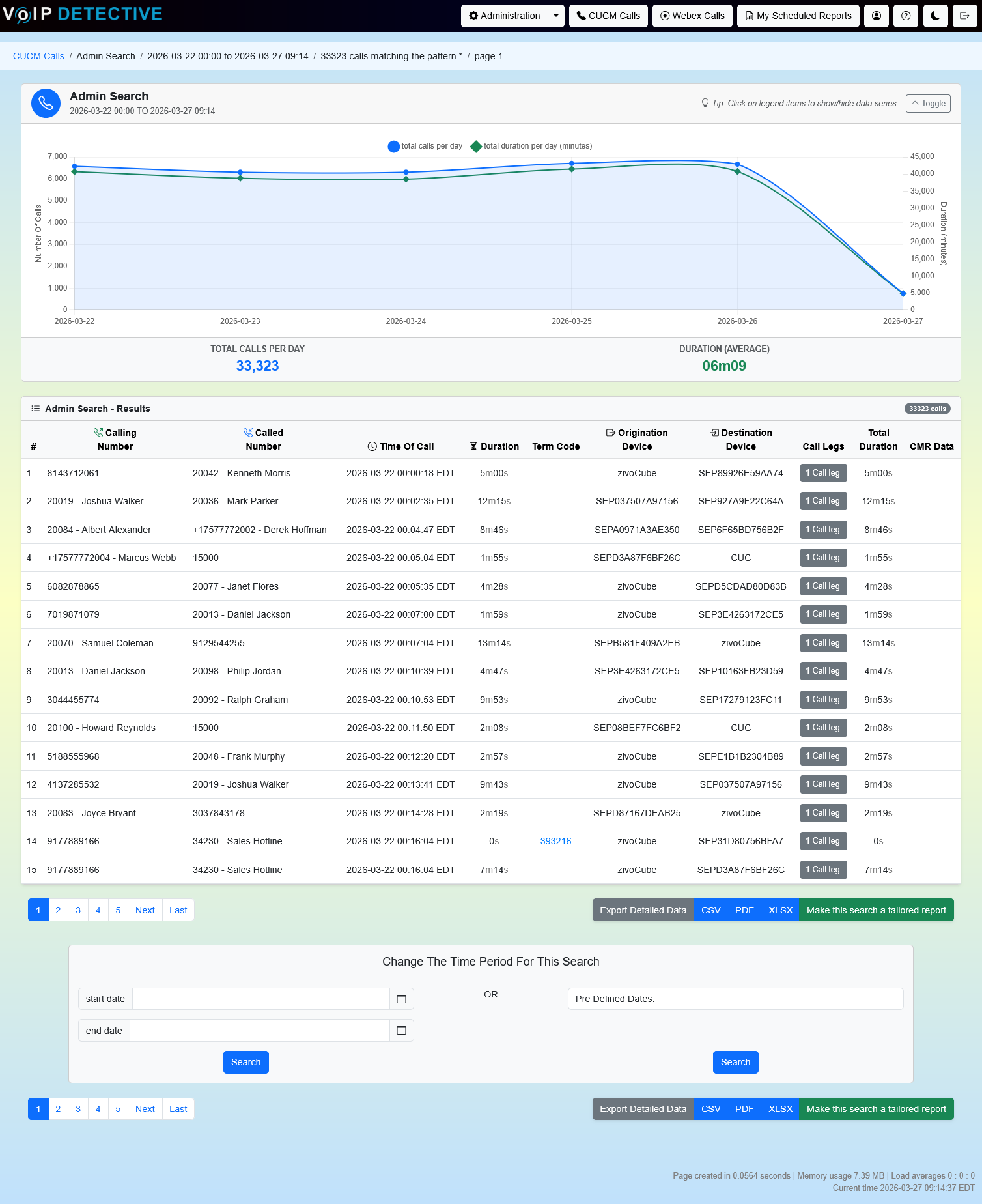 The Admin Search is the most powerful and flexible search in VoIP Detective. It allows administrators and global managers to locate any call record in the CUCM CDR database without restrictions – including completed calls, failed calls, transfers, conferences, and calls that never connected. With advanced filters for gateway, IP address, device MAC, call termination code, redirect reason, and duration range, it is the go-to tool for troubleshooting and auditing.