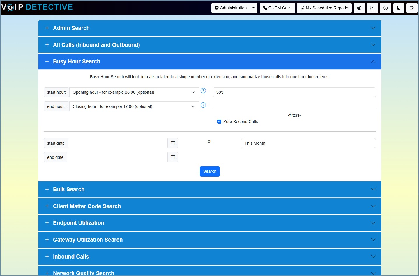 In order to run a busy hour search on a particular extension, you must either be an administrator, global manager, or that extension must have been assigned to your team by the administrator.