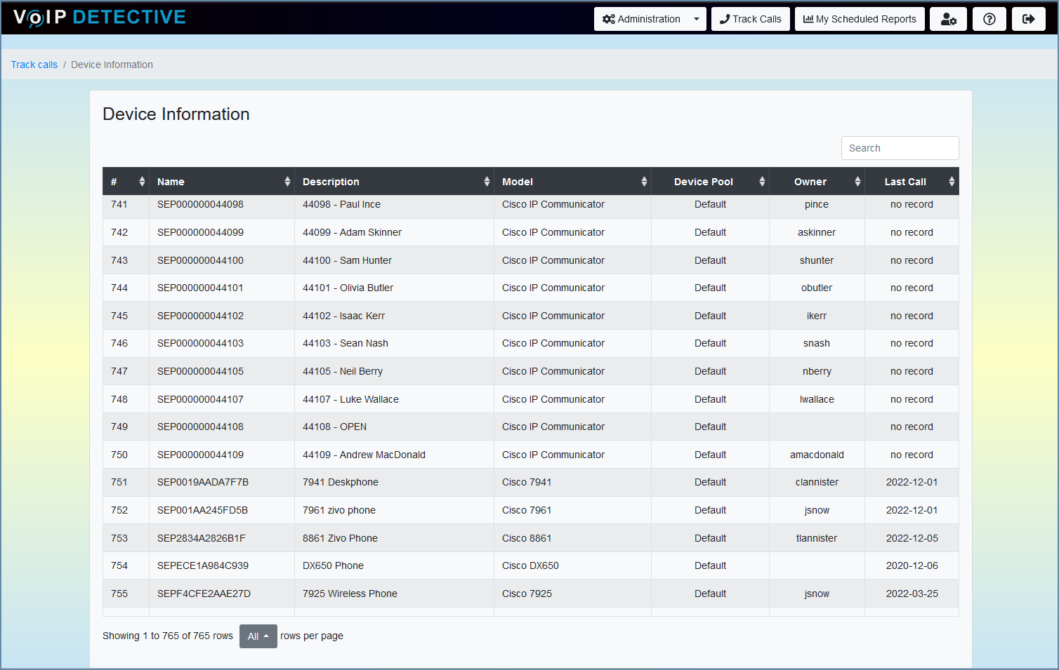 ℹ️ Tip: Sort by the Last Call column to quickly see which devices haven’t been used recently. Devices showing “No Record” or very old dates are strong candidates for decommissioning.