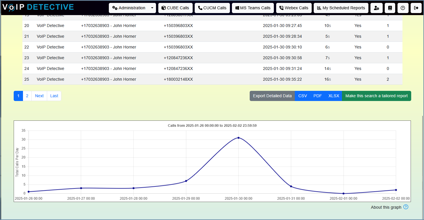 The Outbound Call search will return all calls coming out of a single employee's device(s)