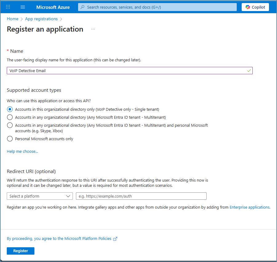 - Redirect URI: Leave blank (not required for Device Code Flow)